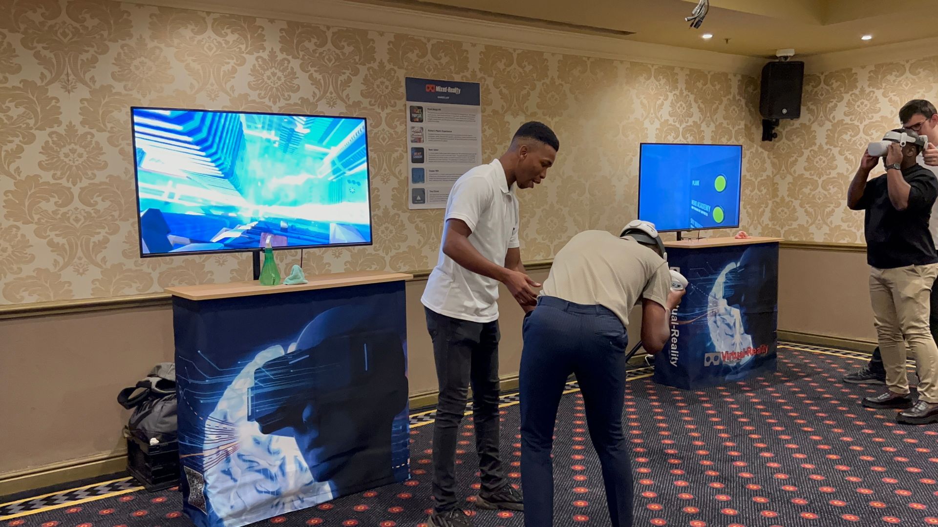 The Emperors Palace VR event was distinguished by its flawless integration of Virtual Reality with live broadcasting, enabling both participants and spectators to engage simultaneously. Utilizing two Quest 2 headsets, the event provided an immersive experience for players while streaming their actions in real-time on large screens, fostering a dynamic and interactive environment.