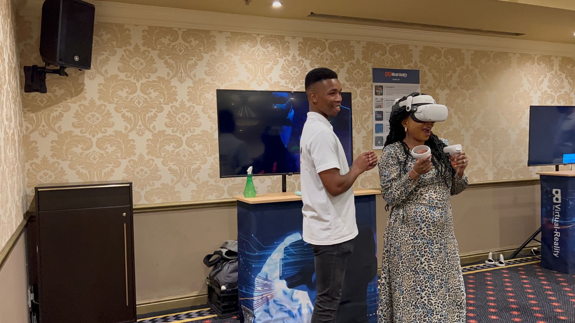 On November 6th, Emperors Palace transformed into a hub of innovation by hosting an event that pushed the boundaries of Virtual Reality (VR) and live entertainment. This pioneering event showcased the immense possibilities of VR, utilizing two Quest 2 headsets to plunge participants into extraordinary virtual realms. The action extended beyond the headset users, as their experiences were streamed live on large screens, enabling the entire audience to engage with every exhilarating moment. This fusion of personal immersion and collective viewing crafted a vibrant environment filled with suspense, exhilaration, and limitless enjoyment, creating a memorable adventure for all attendees.