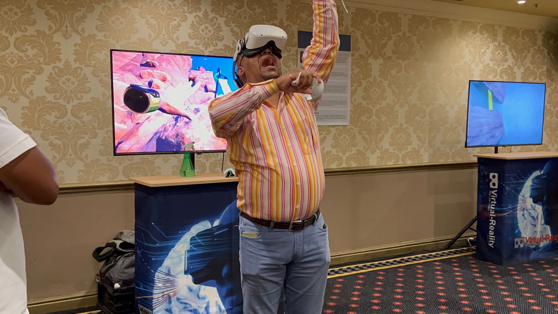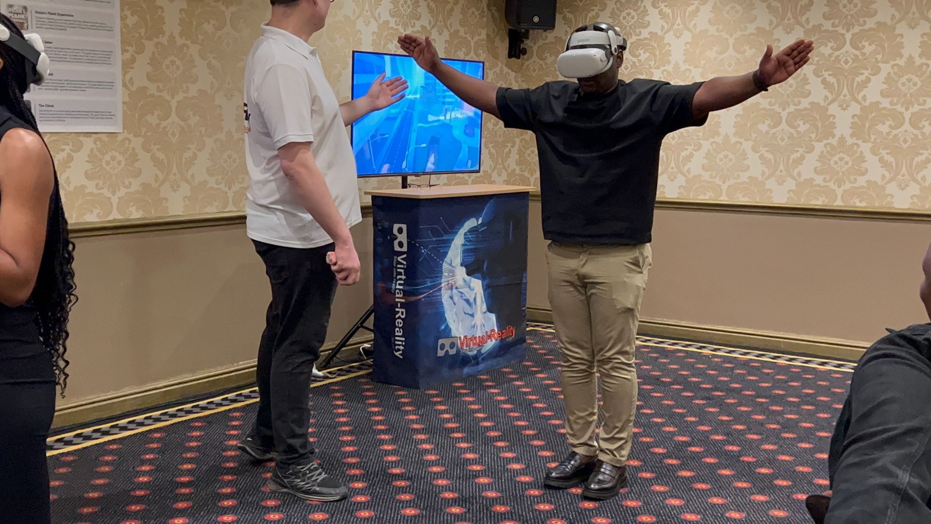 The live broadcast created a bridge between participants and spectators, fostering a communal sense of involvement and excitement. By viewing the VR action on the big screen, those not wearing headsets could still be part of the adventure, discussing strategies, anticipating developments, and celebrating successes together. This dual engagement approach ensured that the event was more than just a technological showcase; it was a collective celebration of innovation and shared human experiences.